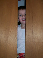 Jacob came and crawled in bed with me at 8:30. He smiled and said, "I wear Light queen, Mater". Then he said, "dere me pear-it Mommy". I said, "Oh, there my favorite too". To which he replied, "Mommy get tome, Daddy come home, Daddy go tore, get it". We got up and then he and Truman ran up and down the hallway. He'd hang onto Truman's collar as they ran and say, "running down hallway, me running down hallway". While we were watching Sesame Street this morning Adam decided to do some exploring. He crawled into the entrance room and discovered the dog dishes. He especially liked the one with a little water in it. He'd splash in the dish and then clap his wet hands right in front of his face. When I went to get Jacob dressed for the day he said, "no take dese off - please Mommy" pointing to his pants. Adam played with mega blocks while Jacob played with his cars. Then Jacob came and played with the blocks too. Got Jacob a paint brush and some water and let him paint his stool on the counter. As he painted he said, "Daddy come home, Daddy tee dat". He calls the paintbrush a toothbrush. When he was done he said, "It gotta dry". After lunch I blew bubbles in the kitchen for the boys - both of them loved that. Then Jacob made a train out of the stools and Adam and I sat behind Jacob as he drove the train. He really thought it was fun when I had his shake and go Mater go under his legs - he laughed and wanted to make it go under my legs. Adam woke up from his nap very cuddely and I rocked him. Jared went outside to plow the driveway but wasn't able to get the tractor started. Jacob woke up from his nap wet and needing to be changed. He wanted to take his clothes right to the wash. Daddy rocked both boys. Went out to fazolies for dinner. We all had fun. Then we walked around the mall. I took Jacob through several campers they had there. He wanted to climb on the beds and look out the window at Daddy and Adam. The boys sat on the riding things they have there. They had fun playing on them even without putting in the quarters. Jacob and Adam sat together in the helicopter. Then we took them to play on the toys in the middle of the mall. Lastly we walked through Target. Got home around 9:30. It is 10:15pm, the boys are in bed and Jared and I are going to watch a movie.
